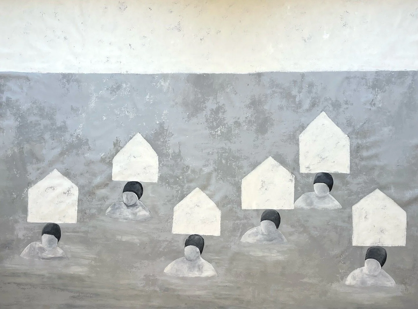 Tourist series (white), 7x4, acrylic and plaster on canvas